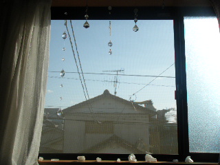 朝、お日様の光で目が覚めて、気持ちいい温かさのまま着替えて、窓に吊ってあるサンキャッチャーを光の入る位置にしました。