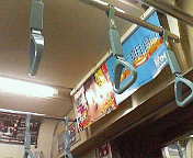 そのお友達が、帰りの電車を一緒に乗ってくれたので、昨日、電車に乗ってて気になってた青い吊り革を激写!青い吊り革ってさ~こんなトコまでクールビズ?都会ってすごいね。